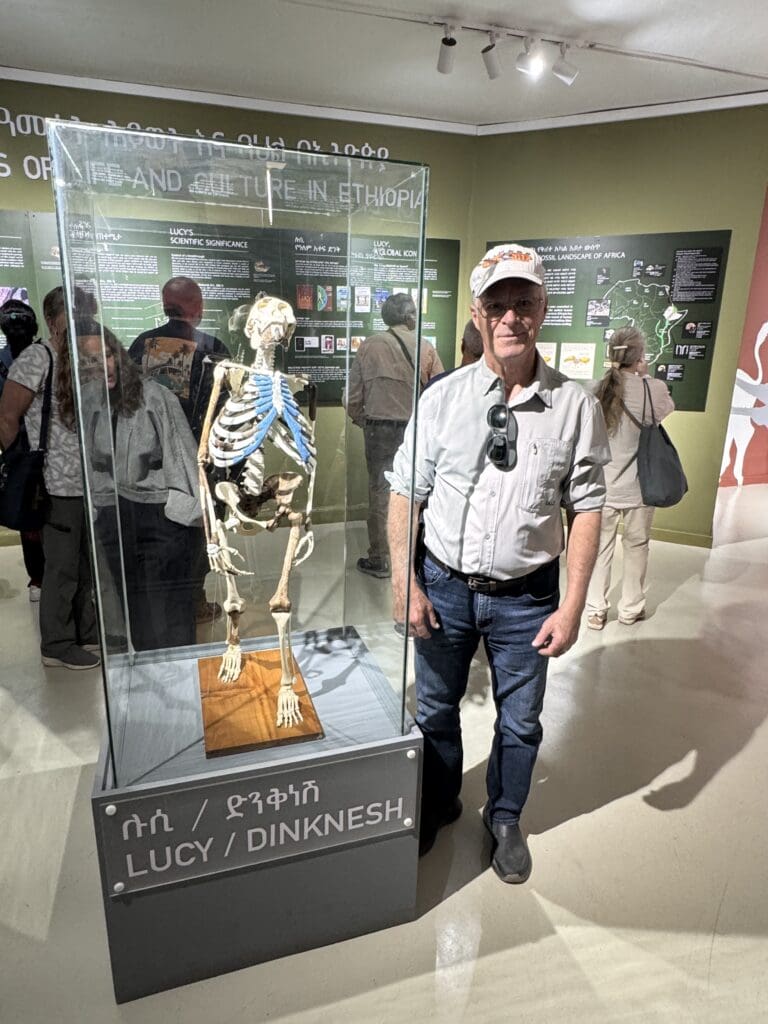 At the Ethiopian National Museum in Addis Ababa, we came face to face with deep time. Here rests โLucy,โ the remarkably complete 3.2-million-year-old skeleton of Australopithecus afarensis discovered in Ethiopiaโs Afar region. Seeing her delicate bonesโand the careful reconstruction beside themโwas quietly profound. In a single room, the timeline of our species seemed to compress, reminding us that Ethiopia is not only rich in culture and faith, but also central to the very origins of humankind.